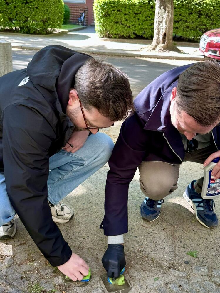Zum 80. Jahrestag der Befreiung, der 1945 das Kriegsende einleitete, haben wir heute im Kiez die Stolpersteine geputzt. Sie erinnern an die Opfer des Nationalsozialismus, etwa Jüdinnen und Juden, politische Verfolgte, Sinti und Roma, Homosexuelle oder Menschen mit Behinderung. Sie liegen vor den letzten frei gewählten Wohnorten der Opfer und machen ihre Geschichte im Alltag sichtbar.