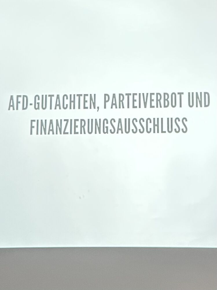 Im Anschluss präsentierte er die wesentlichen Ergebnisse des Gutachtens des Verfassungsschutzes zur Einstufung der AfD als rechtsextrem. Er erläuterte die zentralen Argumentationslinien des Gutachtens und ordnete diese politisch wie rechtlich ein. Darauf aufbauend setzte sich die Sitzung intensiver mit den Voraussetzungen eines Parteiverbotsverfahrens auseinander. Dabei wurden sowohl die formalen und inhaltlichen Hürden eines solchen Verfahrens als auch die damit verbundenen politischen und gesellschaftlichen Risiken diskutiert. Ergänzend wurde thematisiert, unter welchen Bedingungen ein Ausschluss einer Partei von der staatlichen Parteienfinanzierung möglich ist und welche Bedeutung dieses Instrument im Kampf gegen Rechtsextremismus haben kann.