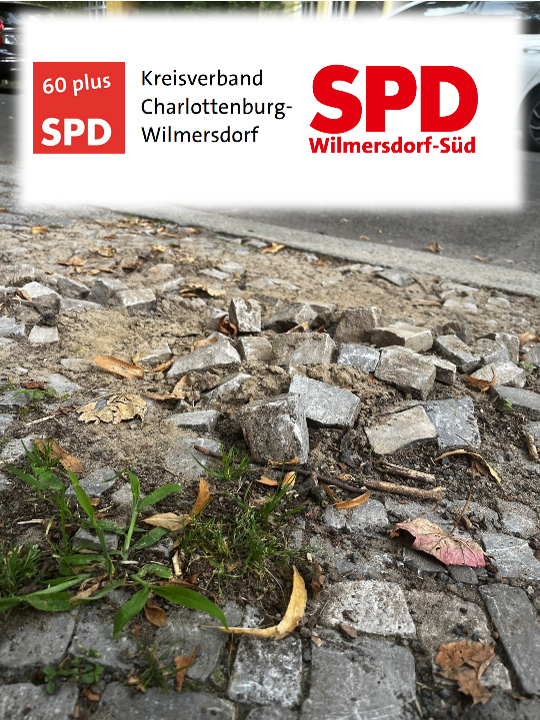 Große Dellen im Großpflaster und Stolpergefahr durch hochstehende Bordsteine